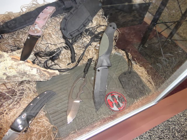 We spent a good part of last week in Las Vegas at the Shot Show and then at the Tactical Knife Invitational Saturday night. While the Shot Show is as humongous as always, we really spent most of our time hanging out at the Hogue booth. The whole line up was present including the new EX-F02 fixed blades and EX-F03 neck knives. They even had some of my custom axes on display and these received a lot of attention from customers as well. Here are some photos: